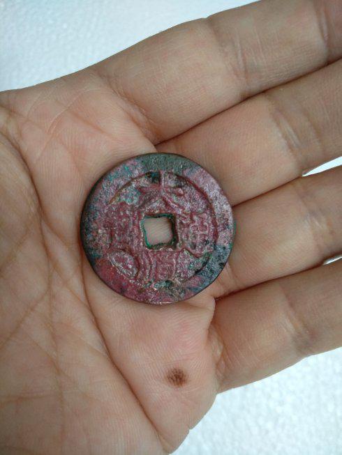 品泉阁主今天向大家展示这枚如皋陈建平家藏的大顺通宝背川户厚版钱币,直径28mm,重12克。正面,红斑入骨,边缘黑锈重重,绿锈点缀其间,楷书钱文大顺通宝四字直读;背面,绿锈厚重,红斑黑锈点缀其间,幽古之风扑面而来。看钱文,背面上川下户,串口可见明显使用痕迹。