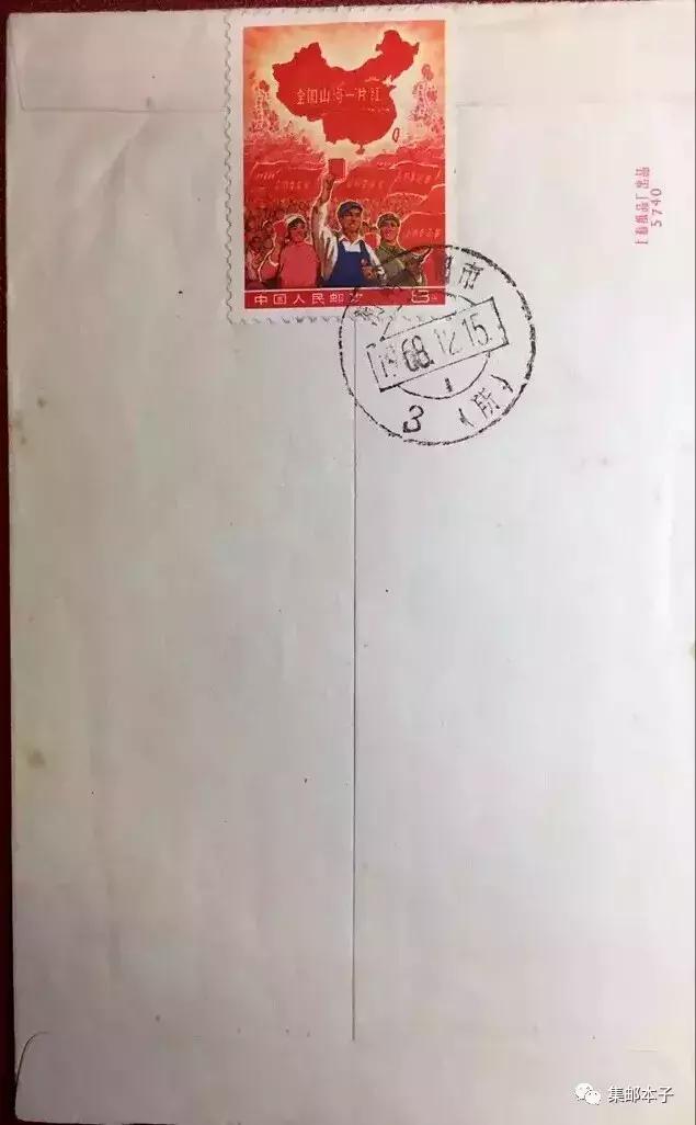 1968年11月24日,一位军人在洛阳驻地的小邮电所买到“一片红”邮票,当即贴信从该所寄给即将分娩的妻子,从而留下了迄今为止最早的实寄封。