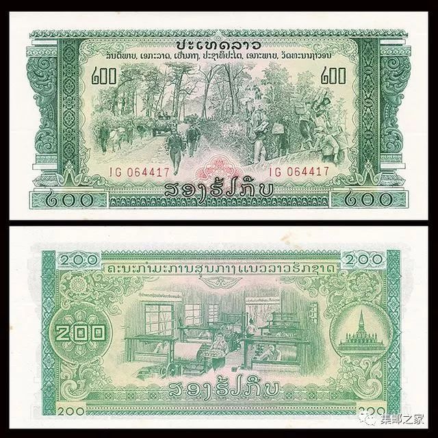 从1968年到1978年这10年间,中国为老挝解放区代印了7种面值的纸币,分别为1、10、20、50、100、200、500基普,其中50基普的有2个版别,所以一共有8个券种。