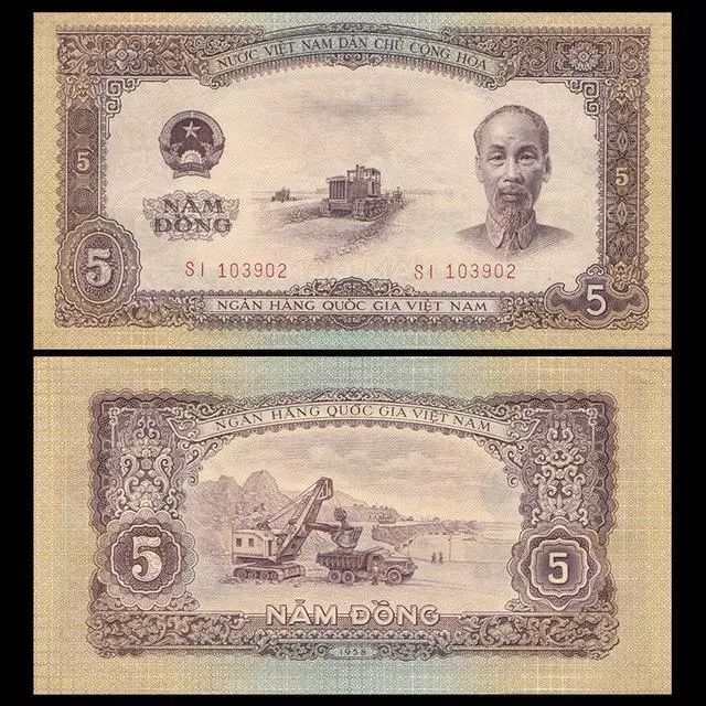 越南1958年5越南盾,第二套有1、2、5角,1、2、5、10、20越南盾,共8种面值。