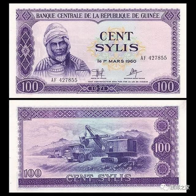 几内亚,1971年开始,中国为几内亚共和国中央银行代印纸币,一直到1985年共代印纸币4个批次,面值为1、2、5、10、25、50、100、500西里,共8种面值。