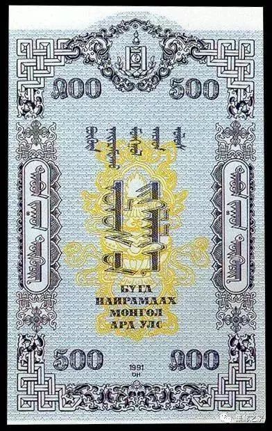 中国为蒙古代印代了1991年发行的蒙古国库券,分别为50、100、200、500图格。