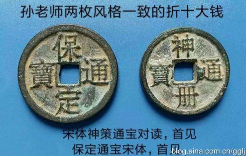 作者:如皋陈建平如上图,群里孙老师展示两枚折十古钱币,钱文为宋体,背星月,风格出奇一致。神策通宝更奇怪,宋体,对读,折十。从钱体铸相和包浆上看,应该是官铸无疑,但是铸于何朝何代,老师们陆续加入,发表意见和看法,展开考证。