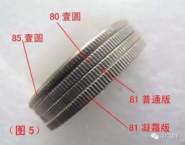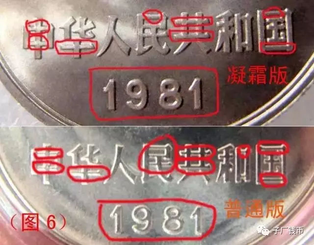 1、凝霜版(或称初铸币,见图4):沈阳造币厂生产,币面凝霜效果明显,凹入部分均无杂乱的铸造纹理,币面色彩一致、清新整洁;币边直、齿长呈直角状,币身较厚,凸显大气(见图5);币正面“中国人民共和国”国号及“1980”年号的字体,笔划宽平、粗细一致、尽显稳重(见图6),币的整体特征与1980年无砖版基本一致。