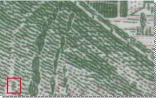 贰角暗记:正面大桥左桥头坡地上,胶印时增设了“2”字暗记
