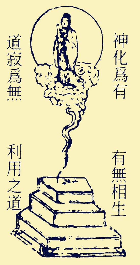 最高峰下面的建筑群是“紫府”,那次高峰的位置出现的这个东西是什么呢?这就是道教的坛,三层坛,坛旁边是两只仙鹤,坛是什么东西?坛是道教施法的重要场所,有多种功能,有“醮天”“迎仙”“镇妖”“祈雨”“祈晴”等多种功能。这在大量的道教文献中记载的非常明确,高山建坛,通常的作用是“醮天”和“迎仙”。