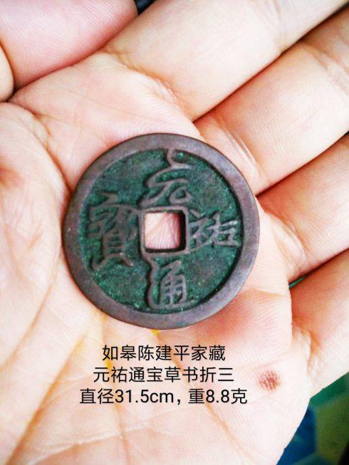 收藏者:如皋陈建平品泉阁主家藏北宋脱谱奇珍:元祐通宝草书折三,直径31.5cm,重8.8克,北坑。