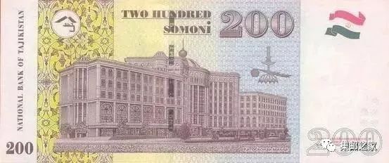 还有塔吉克斯坦200索莫尼纸币上印着首都地标塔吉克斯坦国家图书馆。