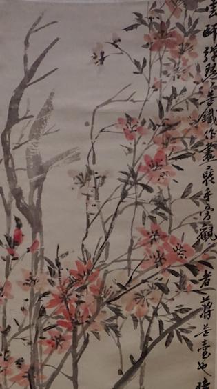 “澎湃新闻·艺术评论”(www.thepaper.cn)在现场发现,此次布展多有别出心裁处,除展出吴昌硕的书画印作品外,还呈现了不少影响吴昌硕的明清书画大家如八大山人、徐渭等的作品,同时还陈设了与吴昌硕画中花卉相对应的盆景花卉等。以四季花卉为表现主题的部分,选取作品中各季代表花卉,并穿插节令题材,使人领略吴昌硕大写意世界里的四季轮转,花落花开。