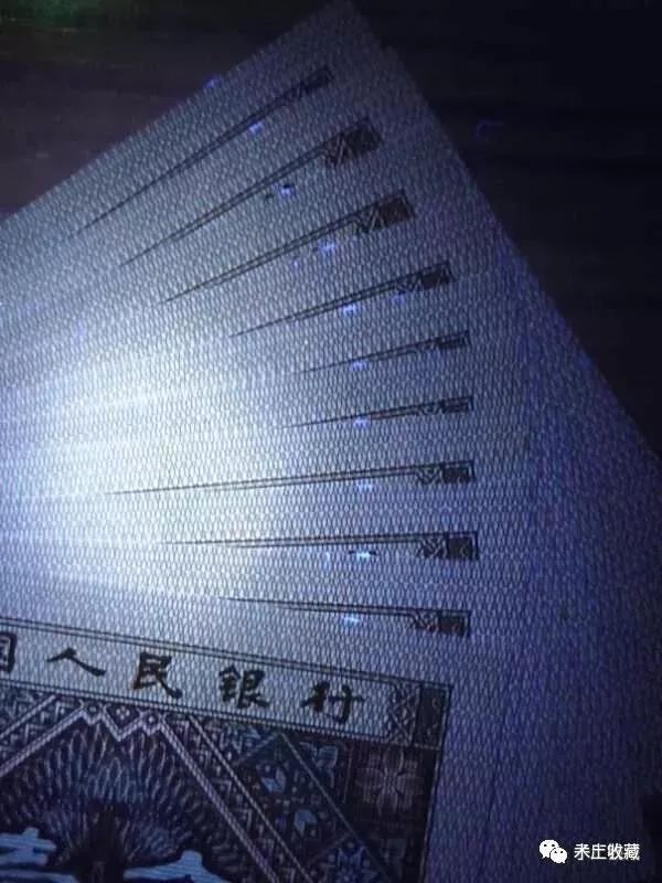 前面的图完美地诠释了“制造”方法,那么上面的这3张图,就是一个画蛇添足了。在成刀的钞票上,用淘宝买来的荧光笔画那么一下,就是一个所谓的标记了。殊不知,钞票是整版印刷的,不可能在印刷时印上荧光标记,只能是后画的,你能画,我能画,大家都能画。臆造无疑!