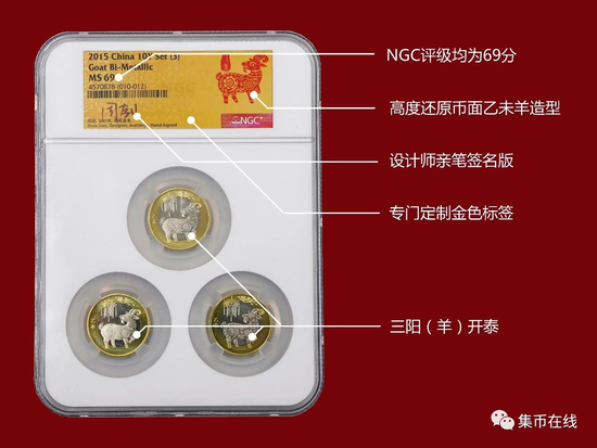 正如该项目的负责人王锡军所说:“此次由国际权威评级公司——NGC评级、著名设计师周剑亲笔签名的‘金标羊王’项目,不仅是一次产品概念上的创新,‘三阳(羊)开泰’也不仅是一个吉祥寓意的植入,这里更多的是对我们国家‘一带一路’战略时间窗口的把握,是钱币行业融入国家文化发展战略的一次尝试。”
