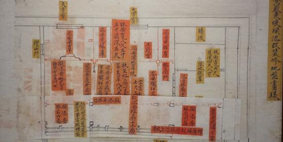 圆明园清夏堂烫样除了烫样,展览也展出清代的宫殿添改装修图样。收藏在国家图书馆和故宫博物院的样式房资料涵盖了多次养心殿内檐装修改造过程,其中改变则以东暖阁为主,在人们熟知的清末针对垂帘听政功能所做的较大规模的改造之外,嘉庆朝之后,道光年间也有微妙的“重新装修”。