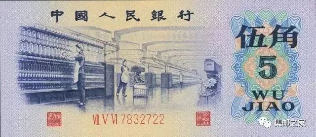 这张5角券,因票面图案为纺织女工,因此又称“纺织5角”,于1972年才印制,是三版币种最晚发行、最晚投放、流通最短的品种。