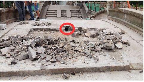 文物被发现时位于五洞桥中间第三个桥拱的桥面石板下,与桥洞下的修桥碑文的位置相对应。文物管理部门一听此事,第一时间赶到现场。
