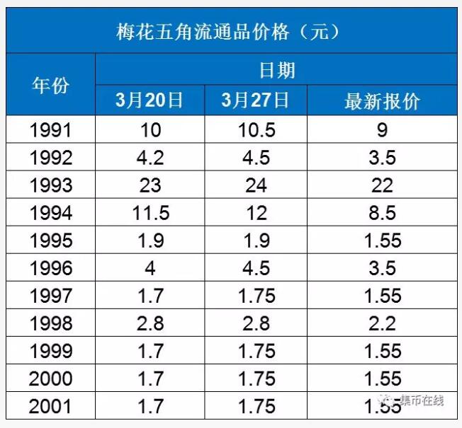 比如梅花五角中的币王93梅花此前一直走的很稳,从退市前的23元稳步上升到退市后的24元,但是近期下调相当明显,已经回落到了22元。梅花五角的整体价格甚至要低于退市前。