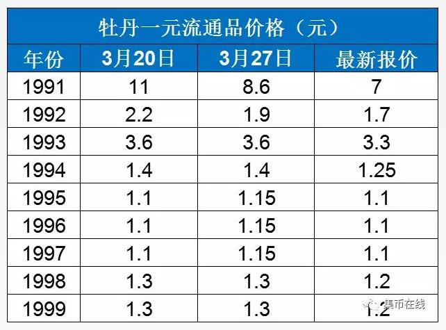 在牡丹一元中,普通年份基本没有风险,94~99年溢价不高,风险偏好较低的朋友可以着重关注;另外,对年份有追求的藏友也可以着重关注91、92、93、00年牡丹一元。