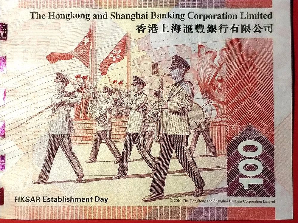 差点成为错版币。这枚钞票的诞生经历波折,还有一段鲜为人知的故事。香港汇丰银行发行设计初稿提交香港特区政府、香港金融管理局审批的过程中,钞票图案的设计被查出出现了重大错误,香港紫金花区旗挂反了,与国旗图案方向明显不一致,差点闹出大乌龙,被要求重新修改设计方案。