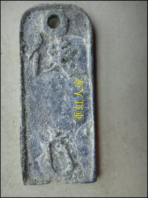 南宋铅质纪值有“准一拾文省”、“准四十文省”等。还有一种“准拾捌界壹百 江州行使”的钱牌,因铸行流通极短,传世甚少,今介绍“准拾捌界壹百 江洲行使”的钱牌,高57MM,背上有一使字,下面一个符号,不解,钱牌满目苍夷,历经千年风霜。