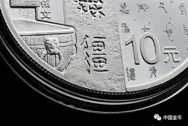 30克银币正面图案为金文“中国”字样衬以青铜器装饰纹样,并刊国名、年号。