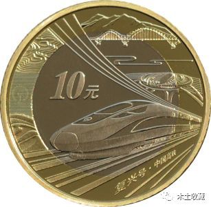 高铁币的正面和之前10元币一样,是老面孔,无需再提。背面由展现中国高铁成就的大胜关长江大桥、北京南站(高铁站)和复兴号组成,另外还有高山、丘陵和沙漠,寓意中国高铁布满大江南北。这里的复兴号重点说明一下,币上的高铁型号是CR400AF,由中车四方机车车辆股份有限公司制造,我们亲切地称之为“红神龙”。