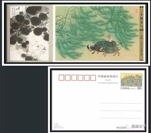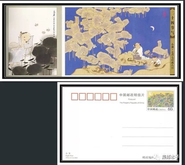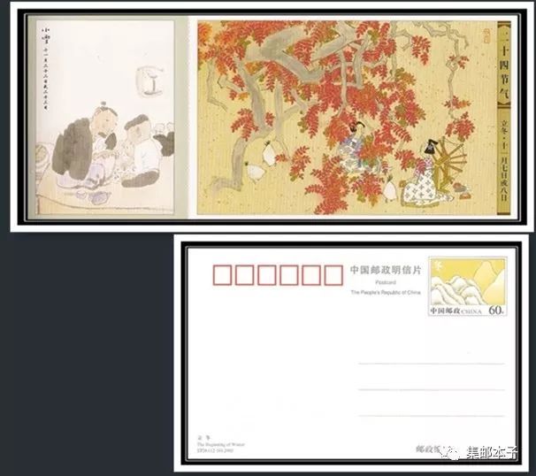 二十四节气特种邮资片虽然只有12个场景,却统一设计成古代场景,所以并没有这个问题。
