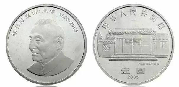 该枚纪念币正面图案为上海青浦陈云故居,内缘上方刊“中华人民共和国”国名,内缘下方依次刊“上海青浦陈云故居”、“壹圆”、“2005”字样。