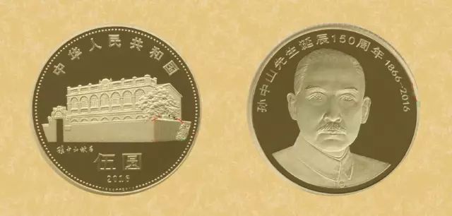 孙中山诞辰150周年纪念币的面额和材质与前面发行的几套纪念币均有所不同,纪念币正面图案为广东省中山市翠亨村孙中山先生故居,其上方刊“中华人民共和国”国名,左下方刊“孙中山故居”字样,下方刊“伍圆”及年号“2016”字样。