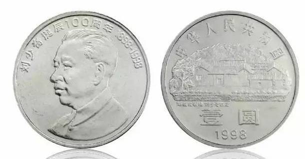 该枚纪念币背面图案为刘少奇侧面肖像。内缘上方刊“刘少奇诞辰100周年1898--1998”字样。