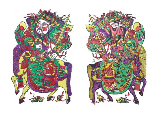 年画是市民文化的代表,经历代艺人之手而融入了民族传统文化的审美观念和崇神意识,形成了鲜明的民间风格。而粗犷大气的画风,鲜艳的颜色,丰富生动的情节,是朱仙镇木板年画最突出的几个特色。民间故事、演义小说、神话故事是朱仙镇木板年画常常选用的内容。比如是门神这个题材,门神中以秦琼、尉迟恭两位武将为主,他们或衣着不同,或形态各异,是朱仙镇木板年画的代表作,在当地家喻户晓,非常受欢迎。木板年画可以贴在家中增添喜气,馈赠亲朋表达祝福,还可以赏析收藏,丰富了人们的日常生活。