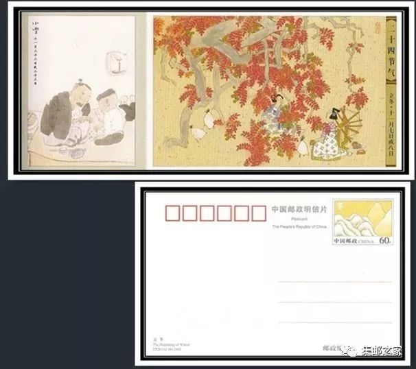 二十四节气特种邮资片虽然只有12个场景,却统一设计成古代场景,所以并没有这个问题。