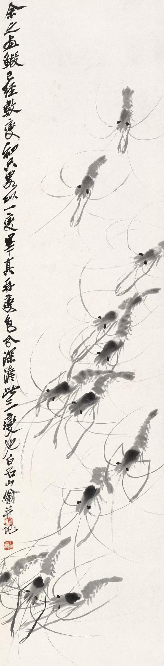 齐白石广习前人笔墨,又以“饿死京华,君等勿怜”的决心进行“衰年变法”。在师法青藤、白阳、八大、石涛的基础上,开始注重学习赵之谦、吴昌硕等海派画家的长处。历经十年,终自创一格,开“红花墨叶”一派,作品之丰,无人能出其右。