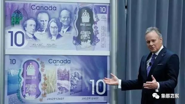 这枚纪念钞采用了全新设计,塑料材质,面额10加元(约合人民币50元),主色调是尊贵的紫色。