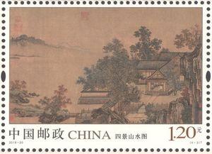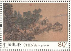 中国邮政定于2018年8月4日发行《四景山水图》特种邮票1套4枚,小全张1枚。详情如下: