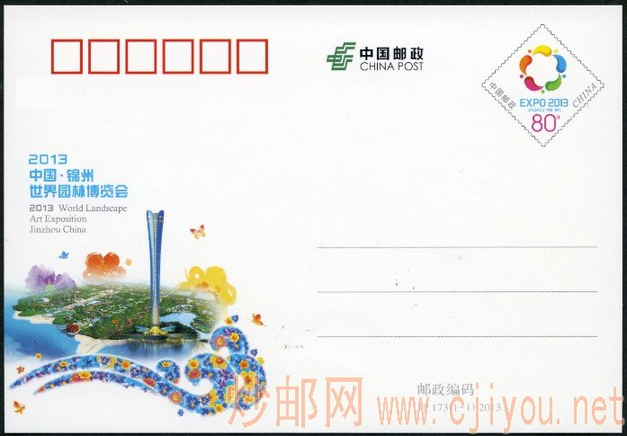 中国邮政定于2013年5月10日发行《2013中国锦州世界园林博览会》纪念邮资明信片1套1枚。详情如下: