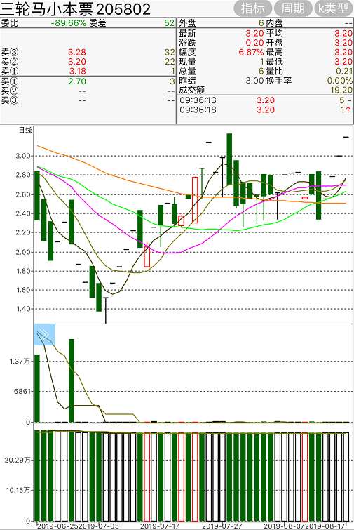 《三輪兔小本票》該票今日區間震盪,或有企穩之勢,近期或出現連續紅盤。建議切勿盲目抄底。