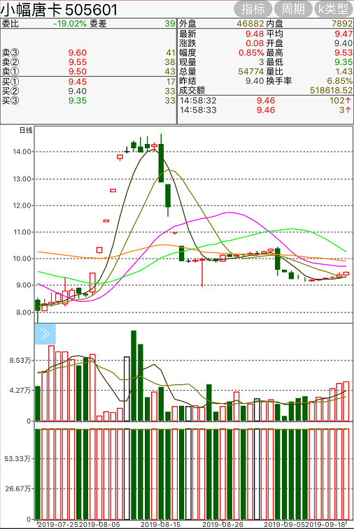 《小幅唐卡》該票近期走勢較弱,目前處於築底階段,後期走勢值得期待。尾盤收於9.48元,上漲0.85%。建議觀望。