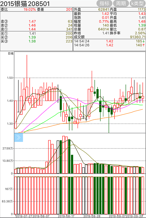 《2015銀貓》該票盤中轉換,近期走勢較弱,或有回調。尾盤收於1.42元,上漲0.71%。建議持續關注。