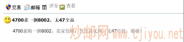 ▲某钱币网站 号码无47的整捆8002以4700元成交