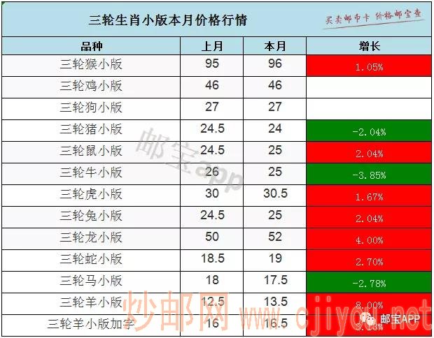 三轮生肖小版本月行情上涨
