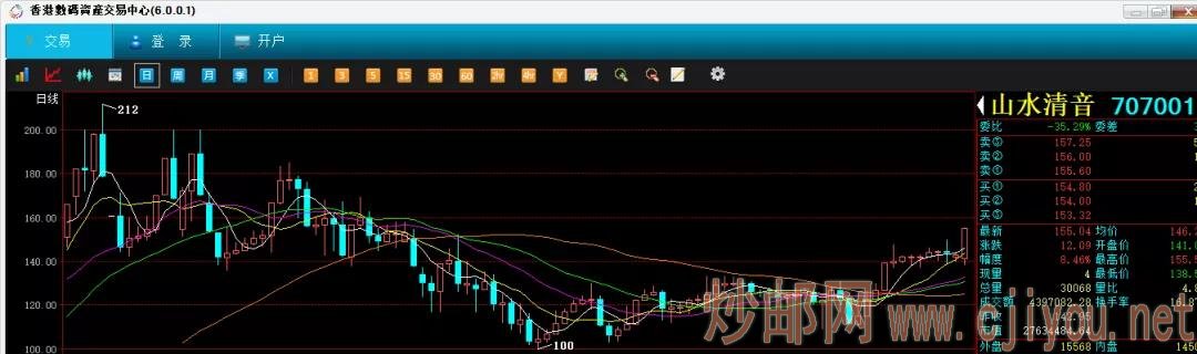 705002虞美人:挂牌价18CNH到最高价159.52CNH涨了9倍。