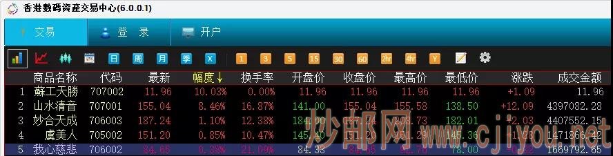 数码艺术品板块共有5只藏品,今日总成交金额约1200万CNH,5只藏品中上涨5只,下跌0只。其中涨停1只,跌停0只。