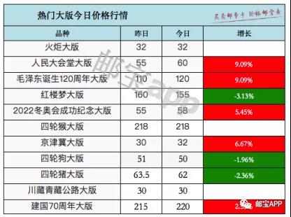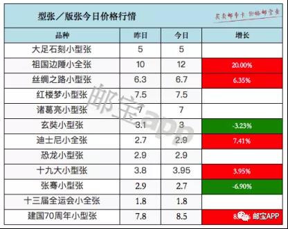 建国70周年套票今日最新价格为8.5元,昨日价格为8元,涨幅6.25%