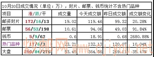 大盘:放量反弹,小幅收涨,略超预期,上涨动力来自封片板块,邮票和钱币板块仍较弱势,未跟涨,今天新进资金主要介入封片板块。近期整体供给压力相对较小,小利好相对较多,下跌较难,但反弹持续性如何仍难预料,短线谨慎乐观。