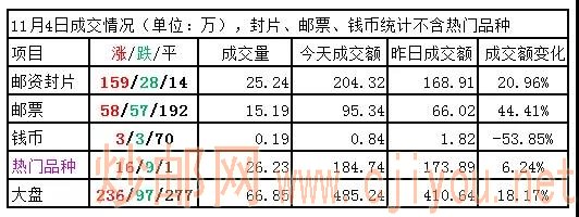 邮票板块:微跌,弱势休整,活跃品种仍较少,但个别品种出现万手大买单情况。古桥、大连、杭州湾、沈阳故宫等,买盘相对积极,成交活跃,不同程度上涨,表现较好。沈阳故宫、杭州湾、牛小本、牡丹双联、海底世界等有较大买盘支撑。