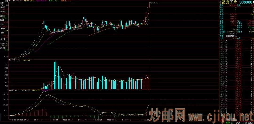 上涨动力今日仍在延续,已经连续三个交易日涨停板。今日涨停收盘再次突破价格新。新高价格:1720.54CNH。
