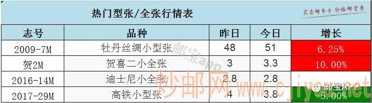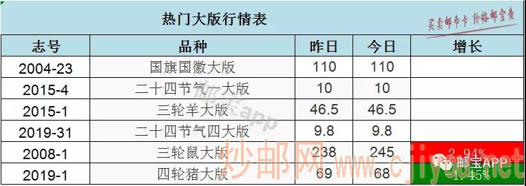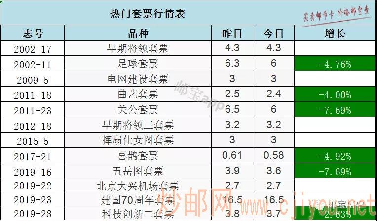 今日的整体行情有所下滑。套票下跌较为严重,大部分产品行情较昨日有所下降。