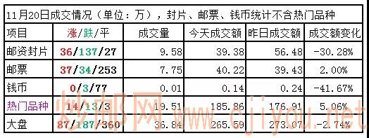 邮票板块:微跌,延续弱势,持续低迷,个别品种有一定表现。古桥,小幅反弹,有积极买盘,黄龙,小幅收跌,但有一定买盘支撑。套票二轮鼠有积极买盘支撑,小幅收涨。狗赠版、(03-25)毛泽东小版、宝鼎有齿、边陲风光、建国60周年小型张等,有较大买单支撑。