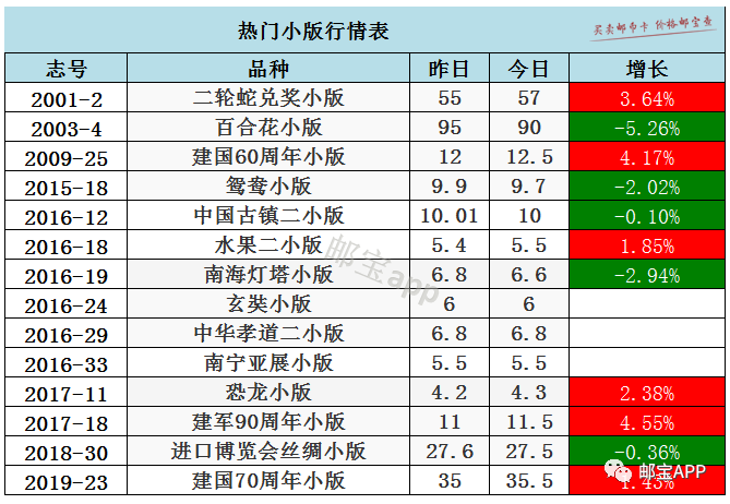 鲁班小型张今日最新价格为3.3元,昨日价格为3元,下跌9.09%。