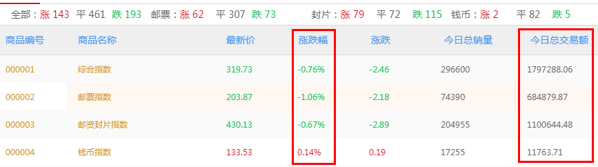 京东文娱寄卖商城商品行情(目前主要分析邮资封片、邮票和钱币板块),以下图表皆可点击放大查看。