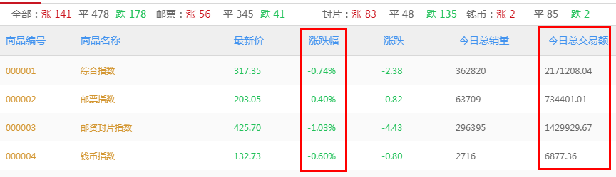 京东文娱寄卖商城商品行情(目前主要分析邮资封片、邮票和钱币板块),以下图表皆可点击放大查看。